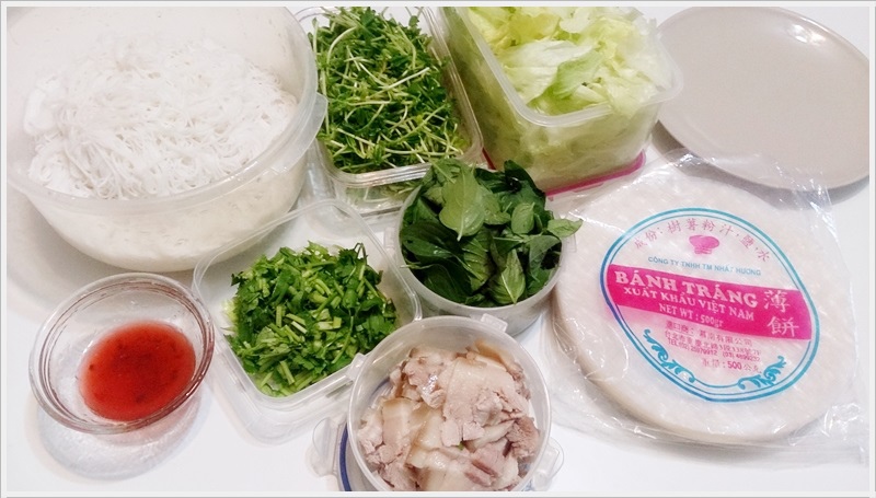 美生菜,綠豆苗,九層塔,香菜,三層肉,火腿,越式米粉,越式米薄餅