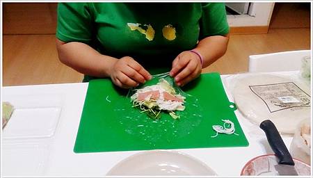 小朋友可以包火腿,或是雞絲,都很好吃唷!!